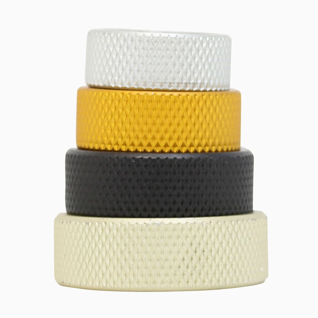 Collet nuts are machined from 6061-T6 aluminum and anodized. A dry film Teflon® lubricant on threads facilitates easy removal.