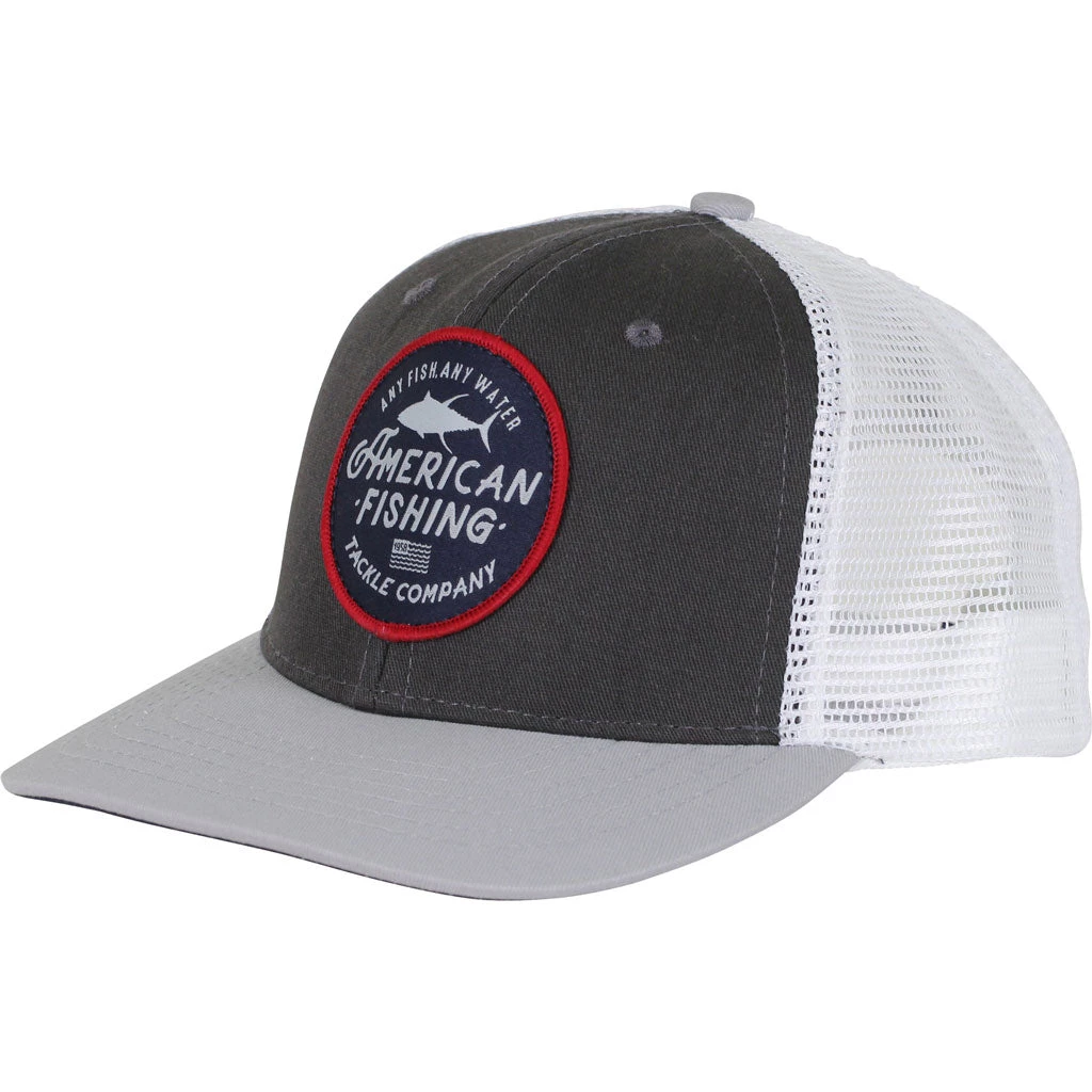 Lemonade trucker hat comes with an AFTCO styled screened patch with stylized American Fishing Tackle Company logo and an AFTCO fish. The 6-panel trucker comes with a low-profile fit with a snapback.