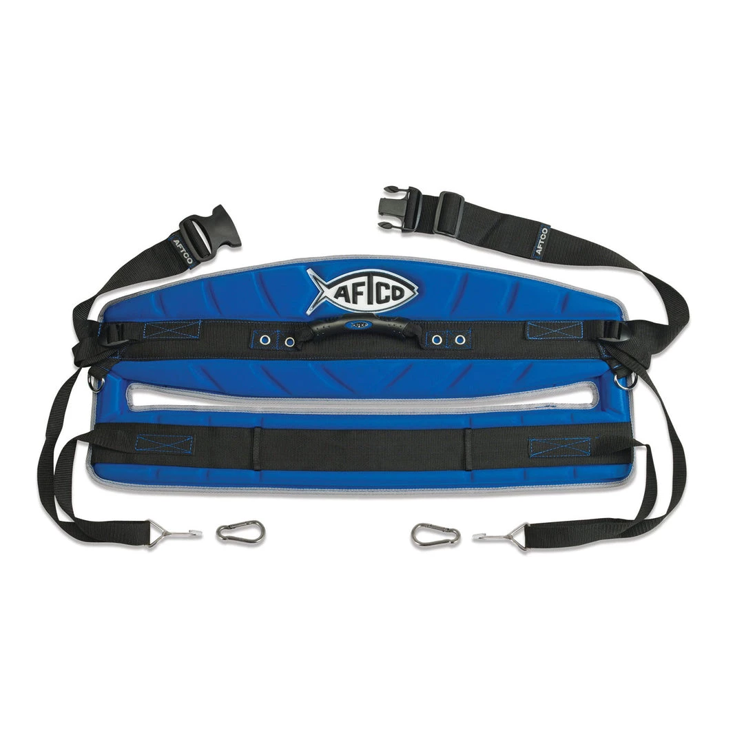For fighting big gamefish stand-up style, the AFTCO MaxForce is the ultimate in fishing harness design. The combination of lumbar and sit-in pads distributes the load below the hips, allowing the lower body to exert maximum pulling leverage with superb comfort under heavy drag loads. Featured is super-comfort molded, closed-cell EVA foam padding, with a tough, waterproof lycra® polyester cover. The liner is made from synthetic terry cloth, which not only wicks moisture, but has enough “tooth” to keep the harness from slipping around and chafing. Attached to the inside liner is a name and ID tag. Included is a mesh bag with grommets for rinsing the harness with fresh water and for easy storage. Otherwise, the AFTCO Maxforce Fighting Harness is completely synthetic and machine washable. Adjustable, one size fits most, and the perfect match for 30-lb. to 130-lb. tackle.
