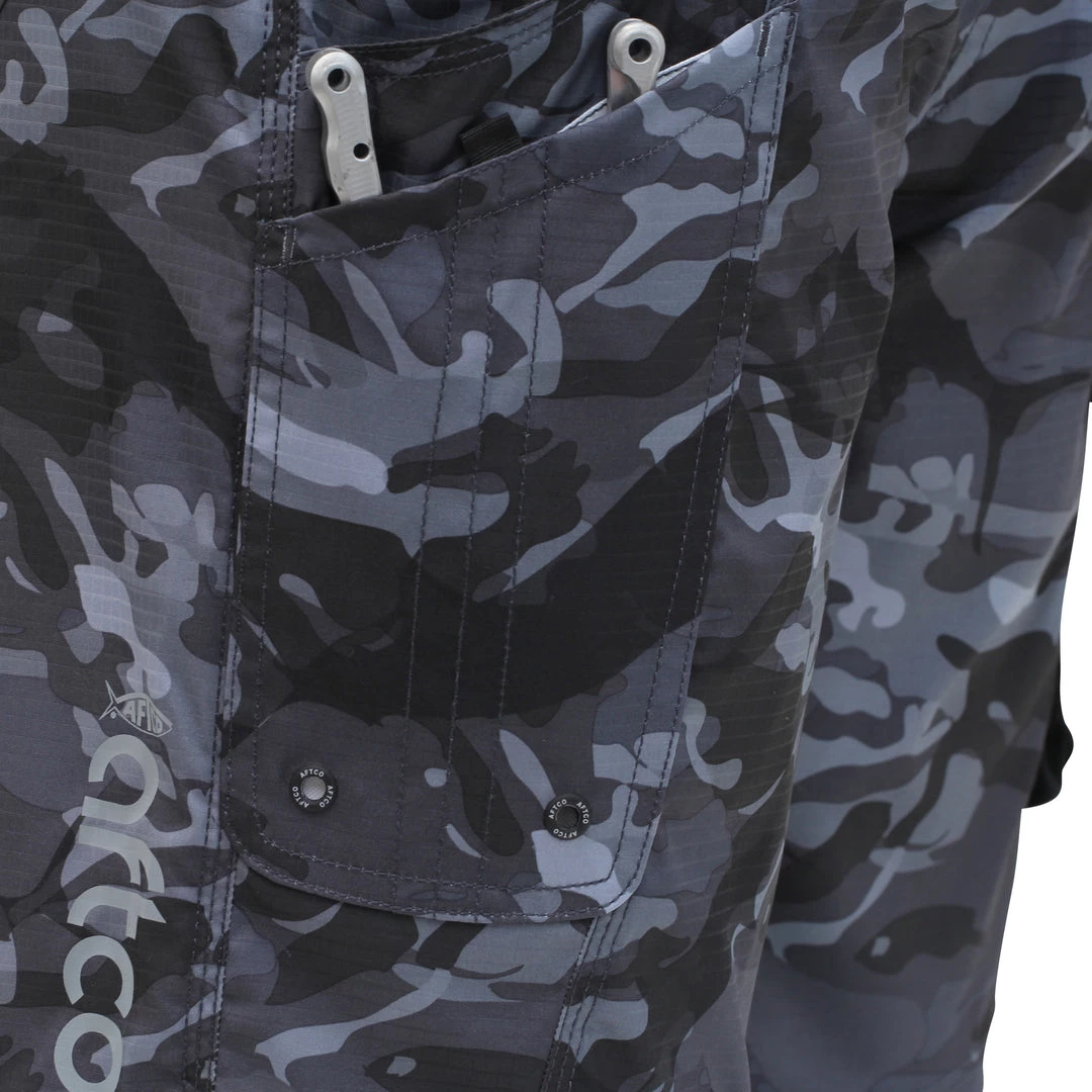 Meet the next generation of AFTCO shorts, featuring lightweight ripstop camo. The Camouflage Tactical fishing short features an exclusive AFTCO fish silhouette hidden within a blue camo, green camo, and grey camo print. As with our Stealth shorts, the Tactical men’s camo fishing shorts sport AFGUARD stain resistance, AFLEX 2-way stretch and AFBLOCK sun protection. Tactical Fishing Short features AFTCO’s Active Fit for a true-to-size fit for optimal on the water performance.