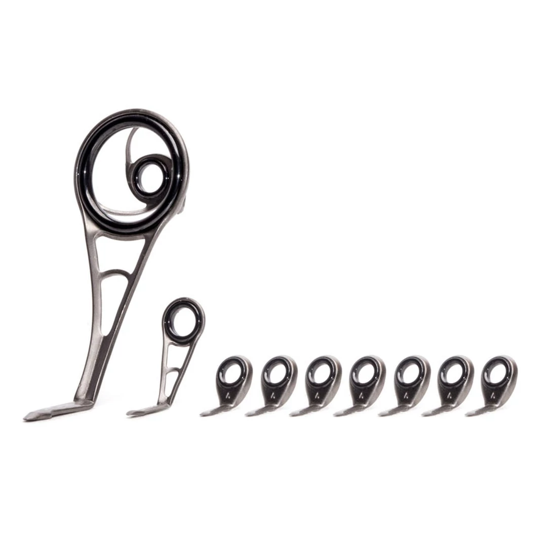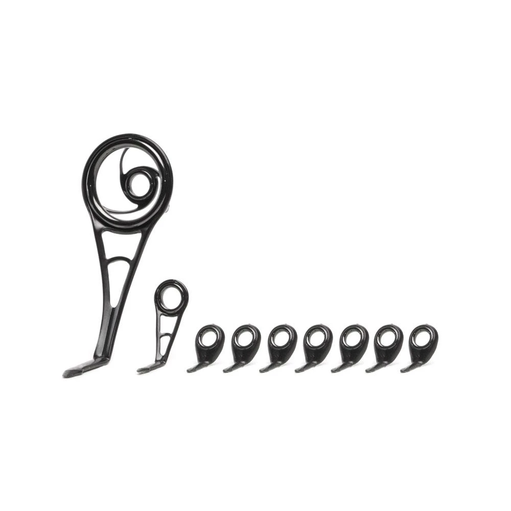 Set includes 1 stripper guide, 1 transition guide & 7 running guides (9 total based on a 7’ spinning rod, additional running guide available for longer rods). Also includes suggested layout measurements.