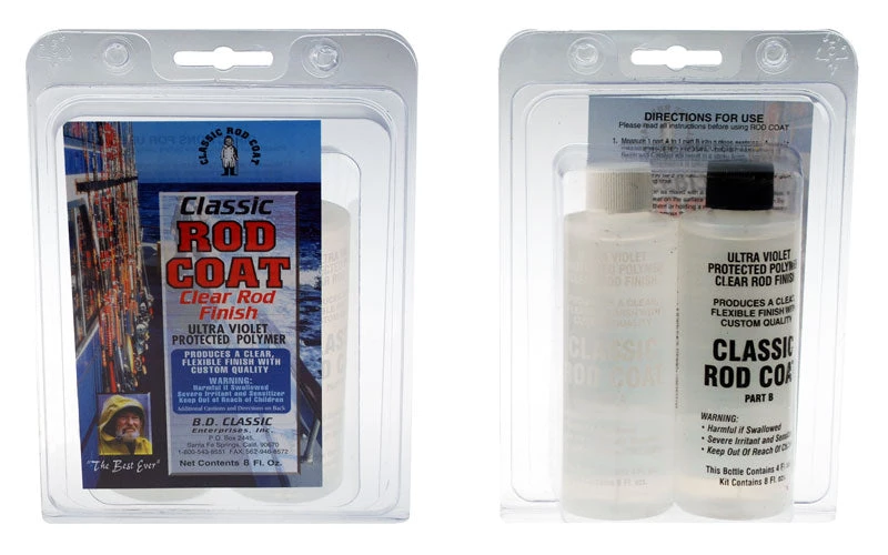These clear flexible finishes are the only rod coatings on the market that inhibit yellowing and fading by providing ultraviolet protection. They prevent chipping, cracking, peeling and splitting at the guide feet while adding a lustrous, custom depth and beauty to your rods.