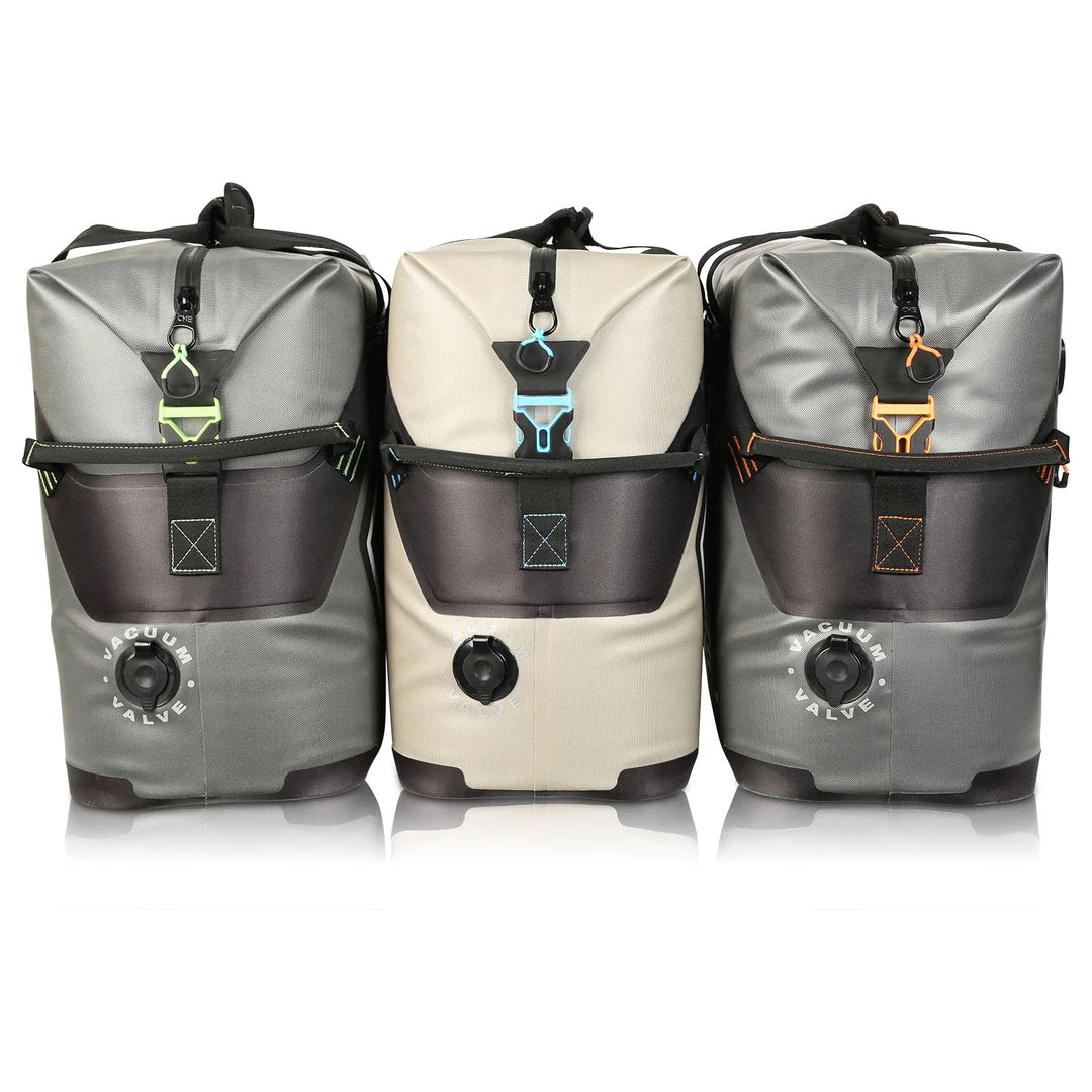The cooler has closed cell foam insulation, preventing air from passing through it and improving the thermal range of the cooler. With a welded waterproof and air resistant zipper that requires lubrication for optimum function, this cooler has a capacity of 22Qts and can be carried with tote handles or with a single padded strap. Like other ENGEL models, the cooler has an integrated bottle opener. New in this cooler is patent pending vacuum valve technology. Customers should use a vacuum to suck out excess air before the first use for optimum performance.
