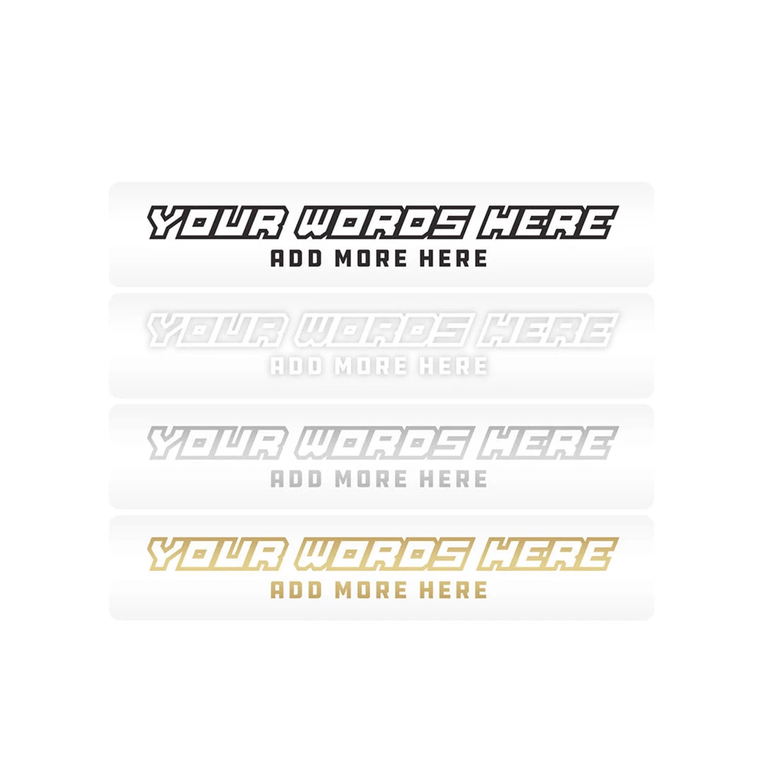 - Decals are approximately 1/2″ tall (max length approximately 3″, depending on amount of text entered)
