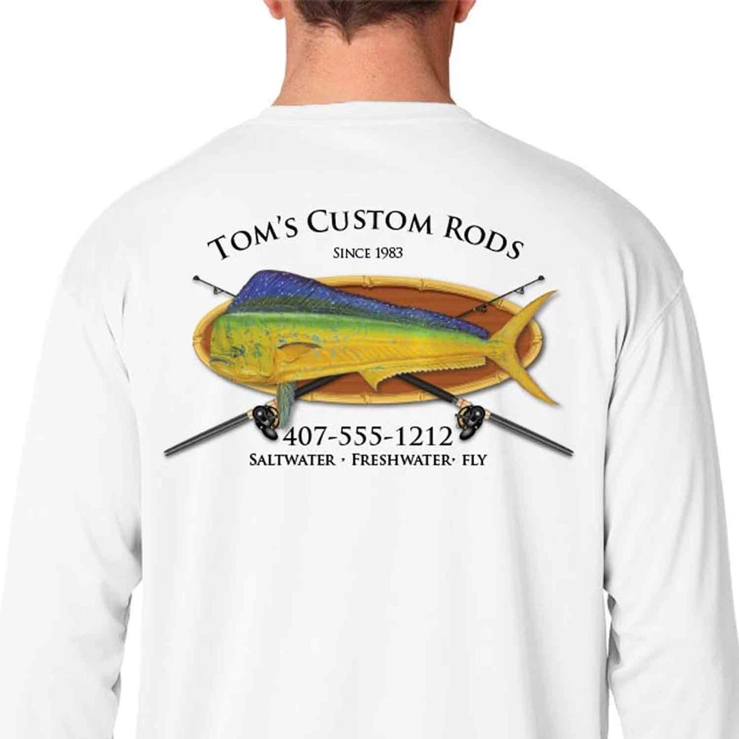 Rod Builders, here is your chance to advertise your services on the water, at home, or out on the town with these stylish new customizable t-shirts! With multiple custom templates to choose from, Mud Hole makes these shirts perfect for advertising your business! Best of all… there are NO MINIMUM ORDERS! These custom shirts are great for gifts, or as a thank-you gift to give customers with each of your custom rods! All shirts are 100% cotton.